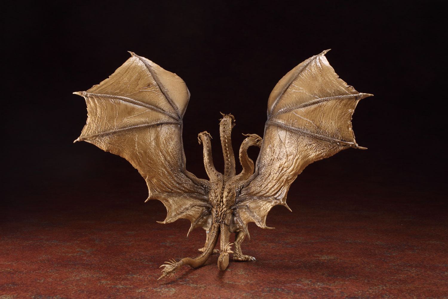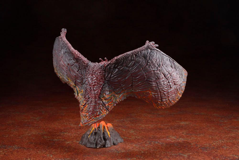 Tamaño aproximado: Rodan 14 cm, Godzilla 9 cm, King Ghidorah 21, Mothra 17 cm, Mothra (larva) 9 cm, Godzilla Burning 9 cm.