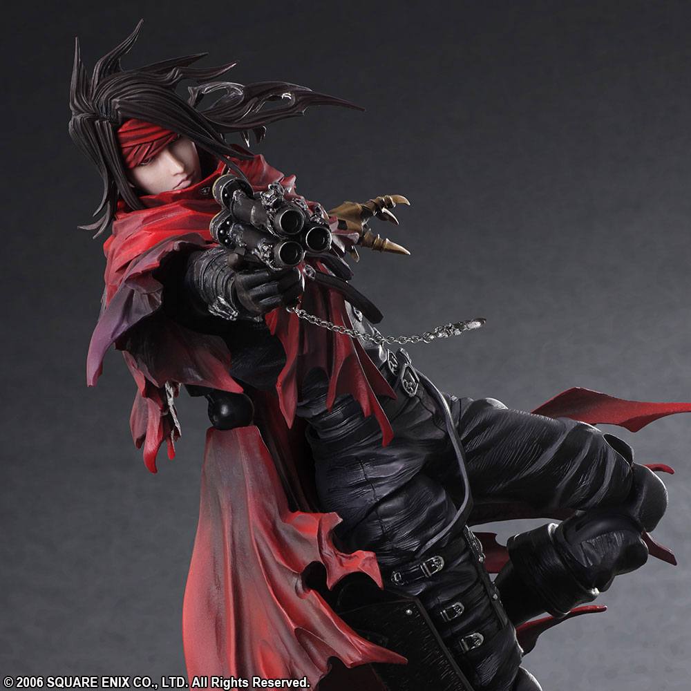 Figura de Vincent Valentine del videojuego Final Fantasy VII. Fabricada en PVC por Square Enix. Mide aproximadamente 27 cm. Viene con accesorios en una caja oficial con ventana.