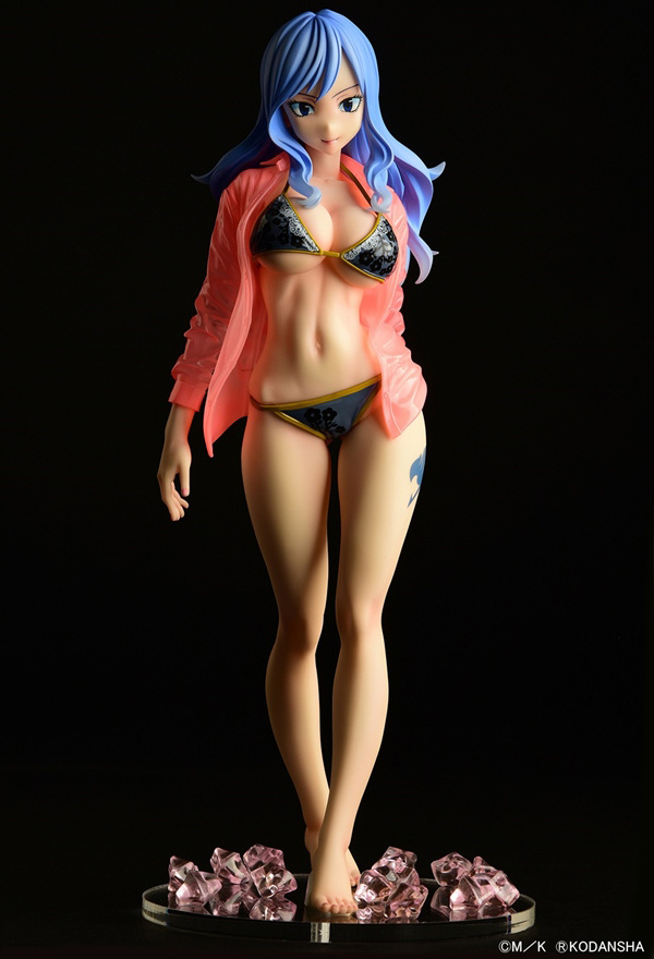 La figura presenta a Juvia Lockser en un seductor estilo gravure, luciendo un elegante bikini negro acompañado de una camisa traslúcida empapada que añade un toque de realismo y sensualidad. La expresión ligeramente sonriente de Juvia captura su personalidad de manera perfecta.