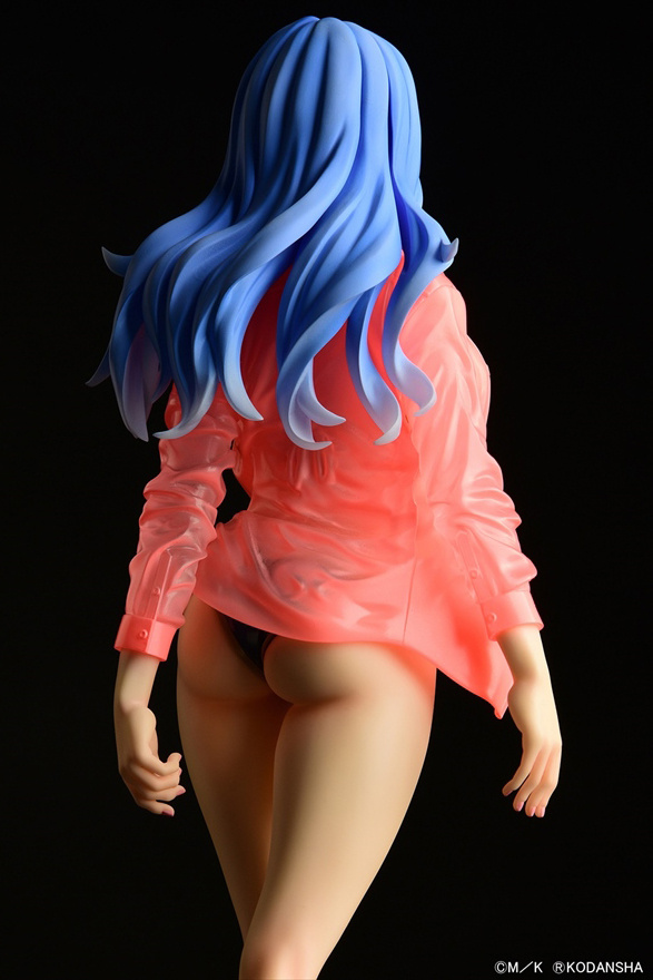 El cabello de Juvia muestra un hermoso gradiente que resalta su diseño único, mientras que el patrón plateado en su bikini ha sido pintado con gran precisión. La base de la figura está adornada con gemas rosas que reflejan el color de la camisa húmeda, añadiendo un toque de elegancia y sofisticación a la pieza.