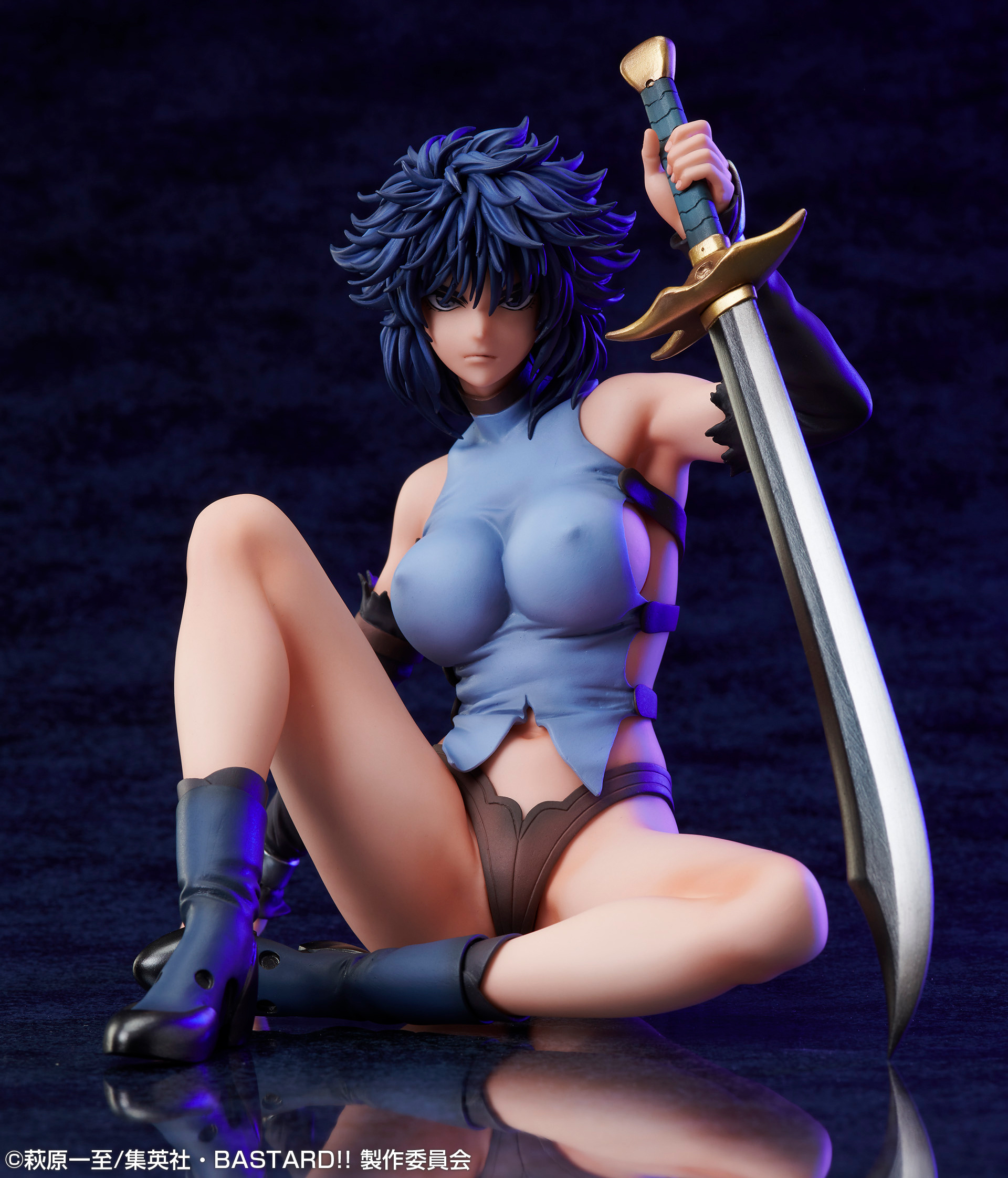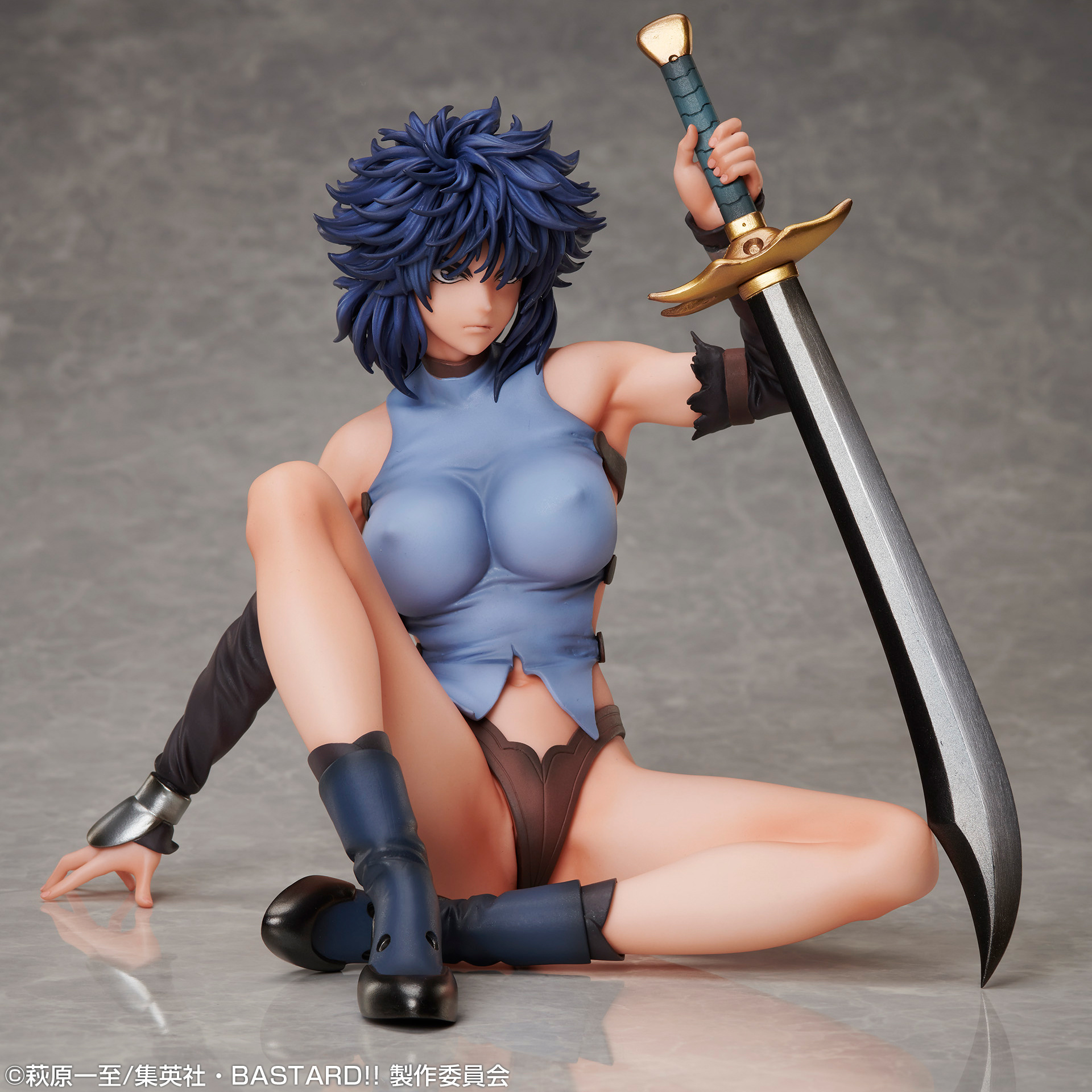 El diseño de Kai Harn es una fiel representación de su personaje en la serie “BASTARD!!”. Con una mano apoyada en su imponente espada, Kai Harn muestra una postura que refleja su capacidad de defensa y fortaleza. Aunque su atuendo y pose pueden ser sugerentes, su expresión y postura dejan claro que es una guerrera formidable, capaz de valerse por sí misma.