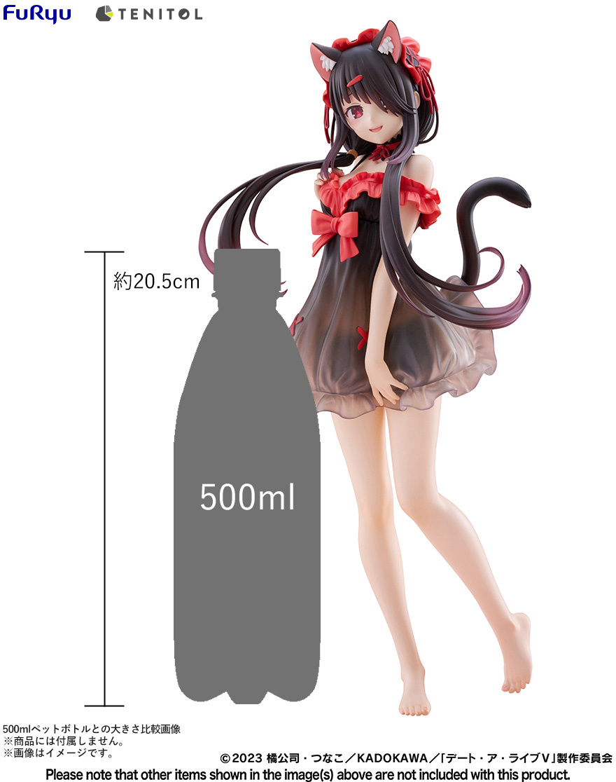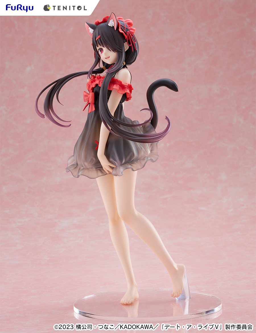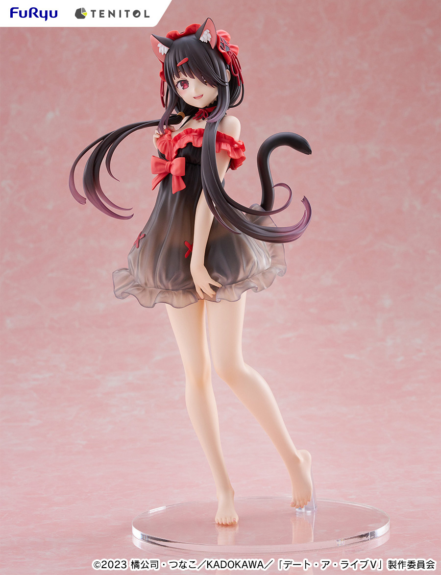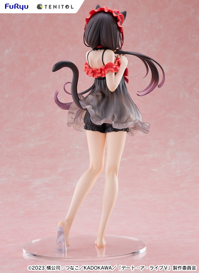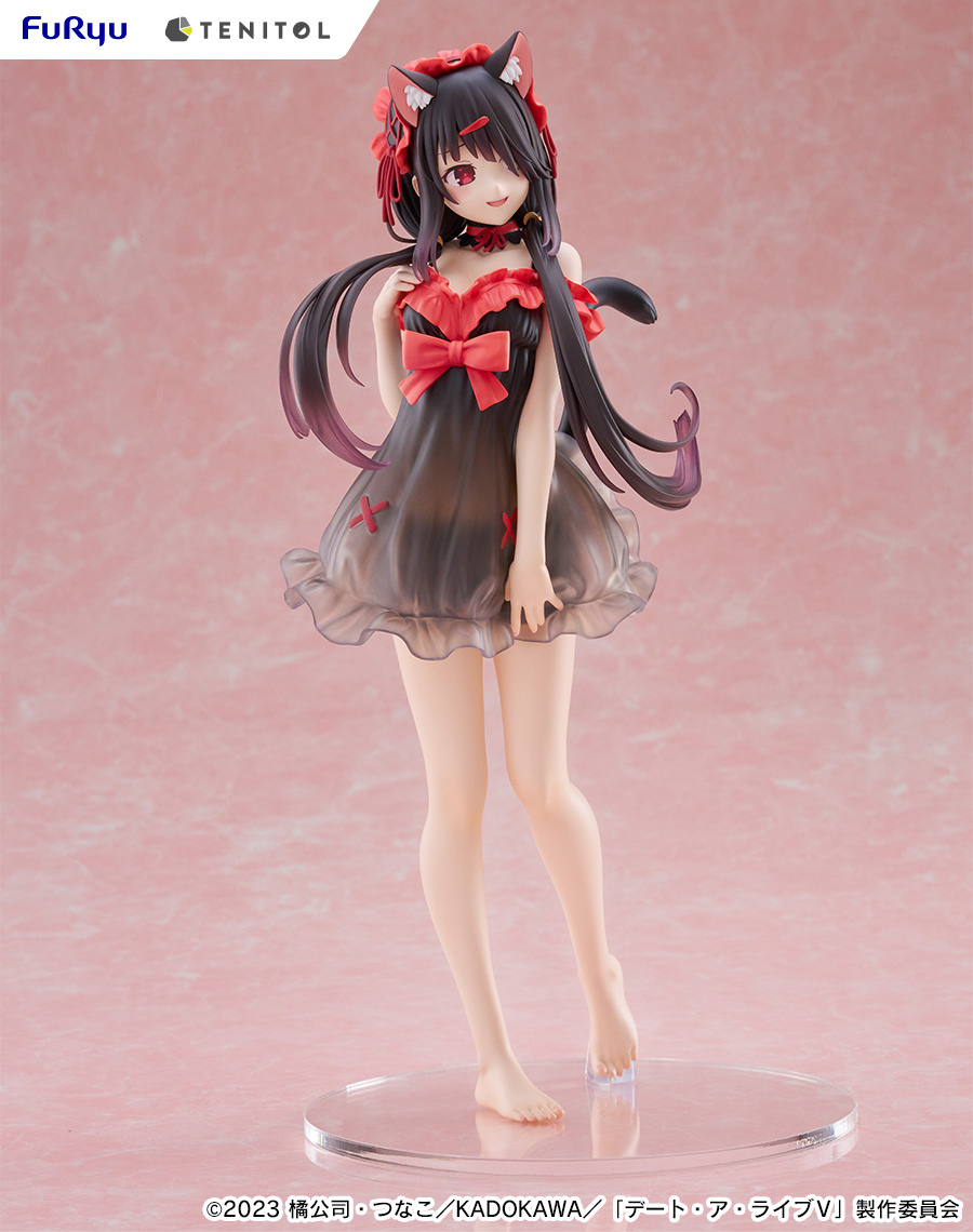 La figura de Kurumi Tokisaki ha sido creada por el prestigioso fabricante FuRyu, famoso por su atención al detalle y calidad de sus productos. La figura forma parte de la serie “Tenitol Tall” y presenta un diseño único con un motivo de lencería que resalta la belleza del personaje. La falda de su negligé es ligeramente translúcida, permitiendo vislumbrar sus encantadores volantes y dotando a la figura de un aire sofisticado y encantador.