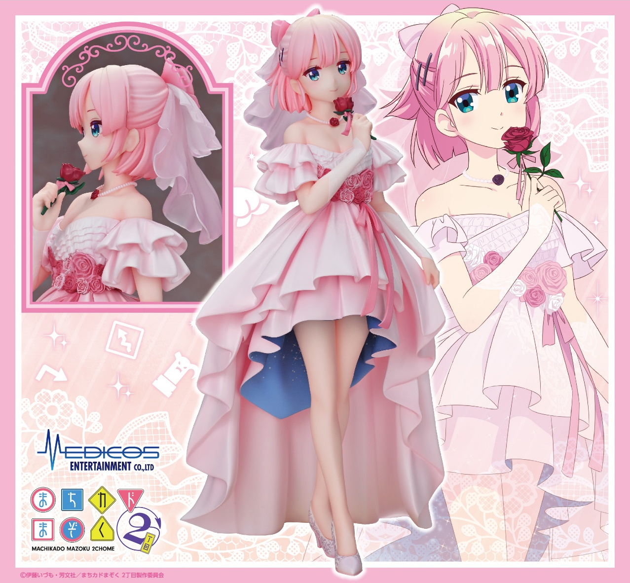Descubre la elegante y encantadora figura de Momo Chiyoda en su versión de boda, inspirada en la popular serie The Demon Girl Next Door 2. Esta exquisita figura ha sido creada por Medicos para conmemorar el décimo aniversario del manga original de cuatro paneles y el quinto aniversario del anime televisivo. La figura presenta a Momo con un sofisticado vestido de novia diseñado por el autor original, Ito Izumo. Es un artículo imprescindible para cualquier coleccionista de figuras de anime.