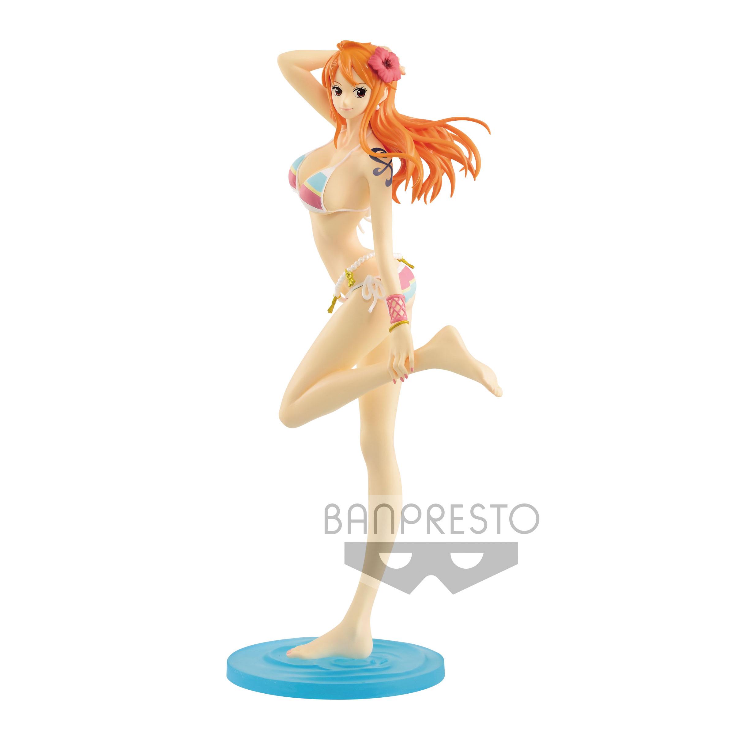 Figura de Nami del famoso anime de One Piece. Fabricada en PVC, de la linea Glitter & Glamours, mide un tamaño aproximado de 25 cm de altura. Viene con una base con su caja de oficial.