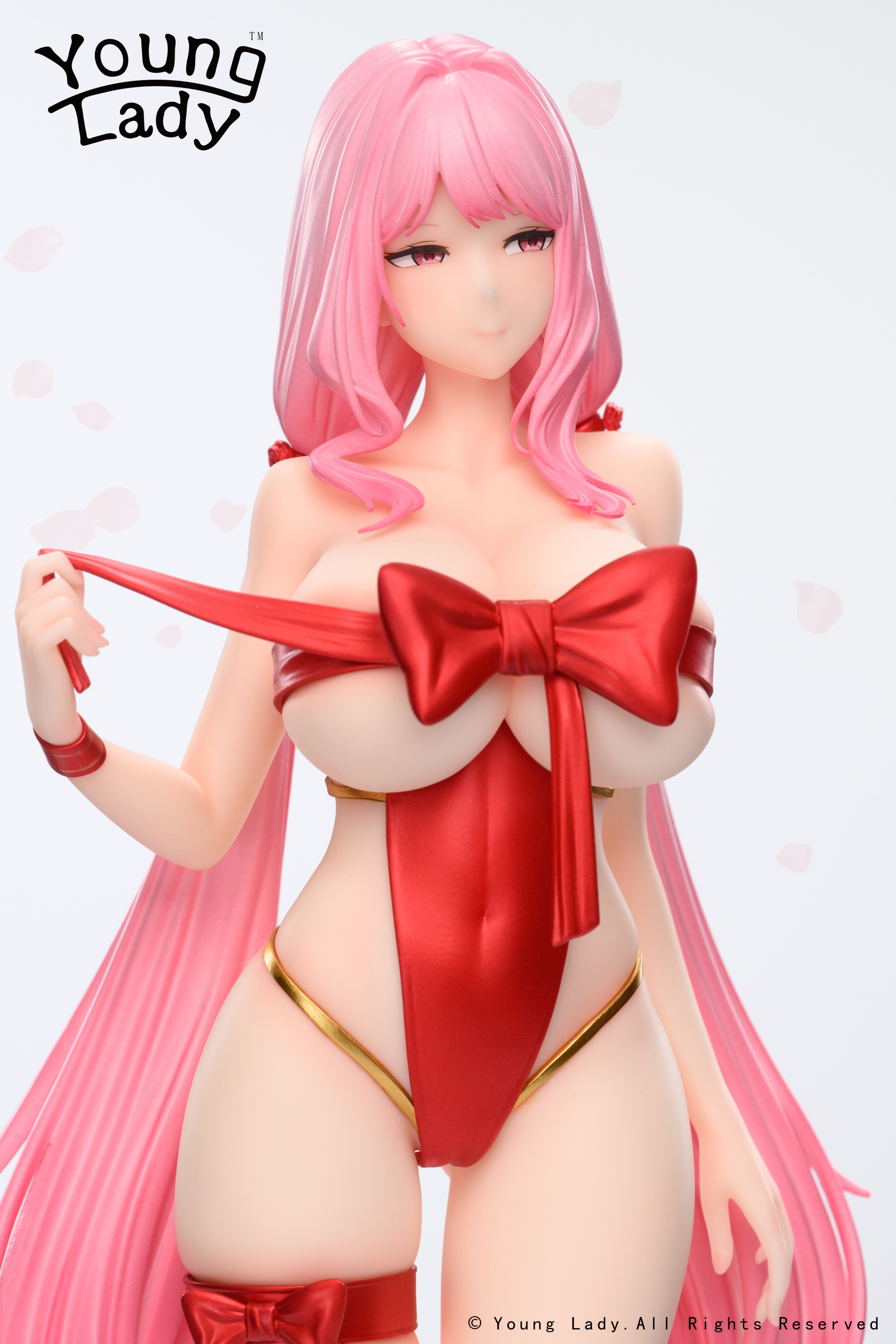 Present-chan Kana se presenta con un diseño audaz y atractivo. La figura está meticulosamente completada y pintada, lo que resalta su cabello rosa vibrante y la expresión encantadora de Kana. YoungLady ha capturado la esencia del personaje con gran precisión, lo cual es evidente en los detalles minuciosos de su atuendo y postura.