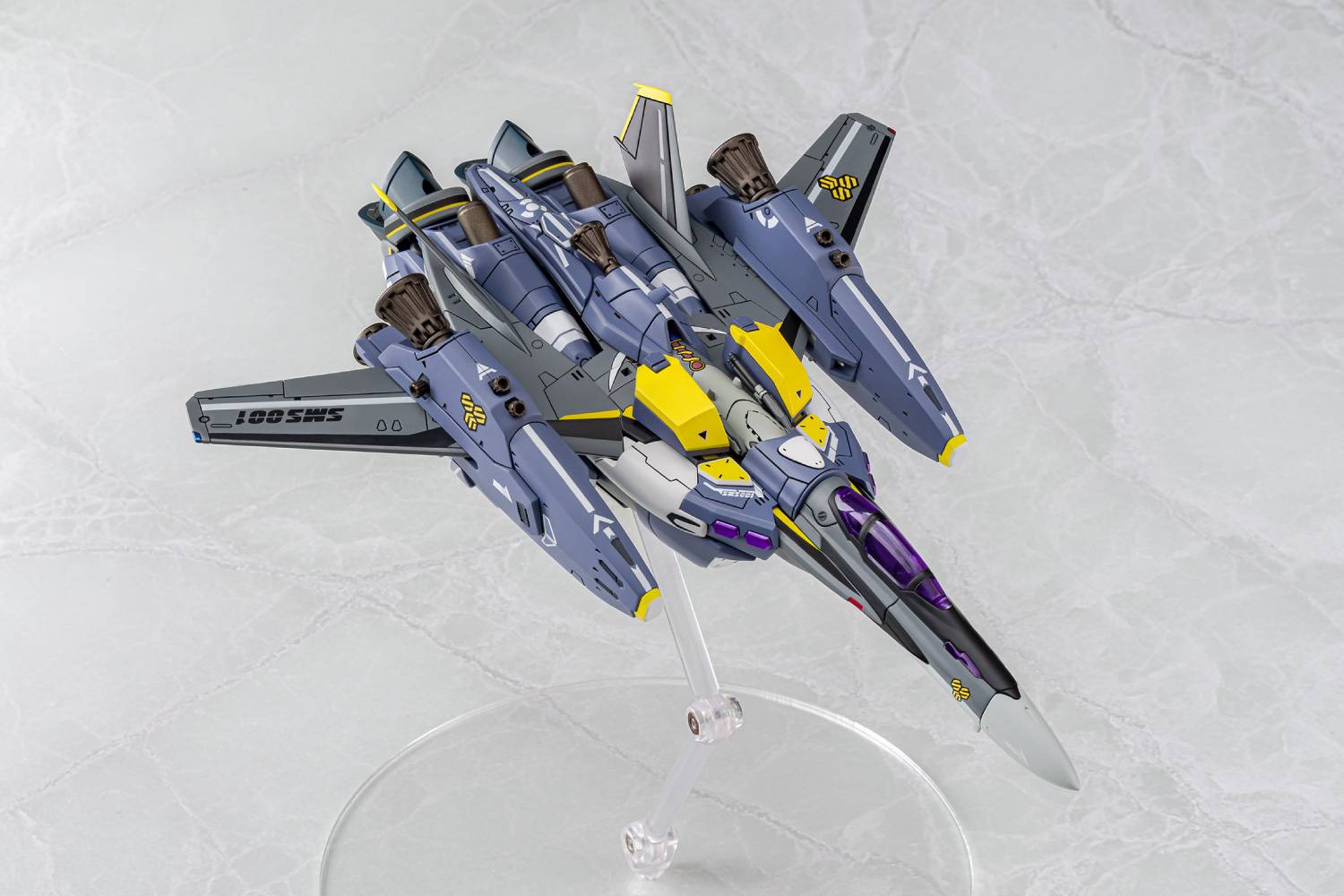 Descubre el espectacular modelo plástico del VF-25S Super Messiah de Macross Frontier. Perfecto para coleccionistas y fans del anime, con detalles asombrosos y piezas articuladas.