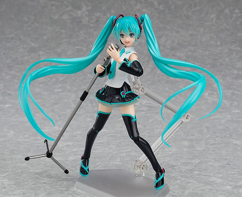 Figura de Hatsune Miku de la famosa software de Vocaloid. Fabricada en PVC, de la linea Character Vocal Series, mide aproximadamente 14 cm de altura. Figura articulable que viene con una base y con accesorios con su caja oficial.